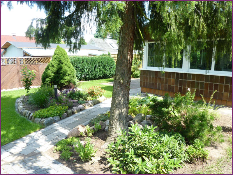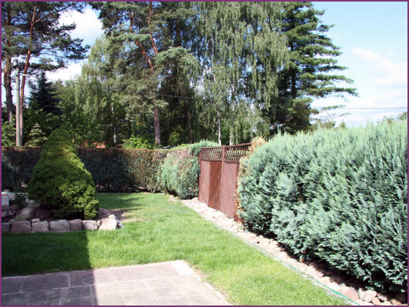 Aussen im GrünenDer Garten wurde rutikal angelegt. Große Bäume spenden Schatten. Zum Nachbarn besteht Sichtschutz.Es steht ein Gästecarport auf dem Grundstück zur Verfügung. Während Ihres Aufenthaltes steht Ihnen das ganze Grundstück (ca. 460 qm) zur Verfügung.Die Terasse ist großzügig bemessen. Unter dem Pavillon sind Sie von der Sonne geschützt. Oder Sie nutzen die Liegewiese als Sonnenanbeter.Sie können den Holzkohlegrill sowie die Gartenmöbel auf der Terasse (vier Gartenstühle, Sonnenschirm, einen Tisch und zwei Liegen) benutzen.